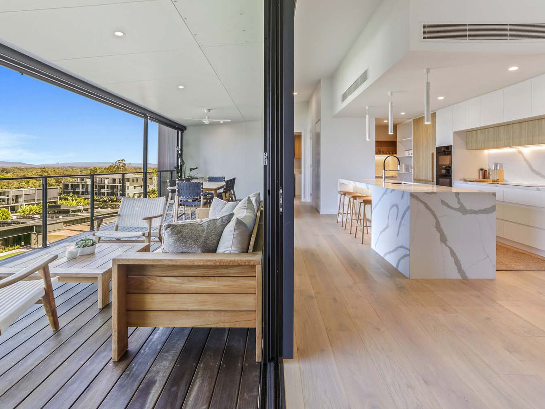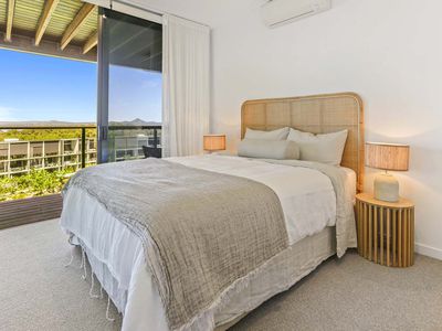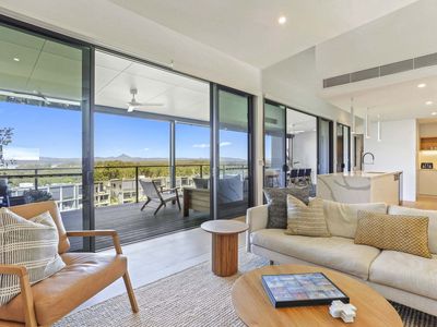 Three main bedrooms showcase expansive views of Lake Weyba and the hinterland.
