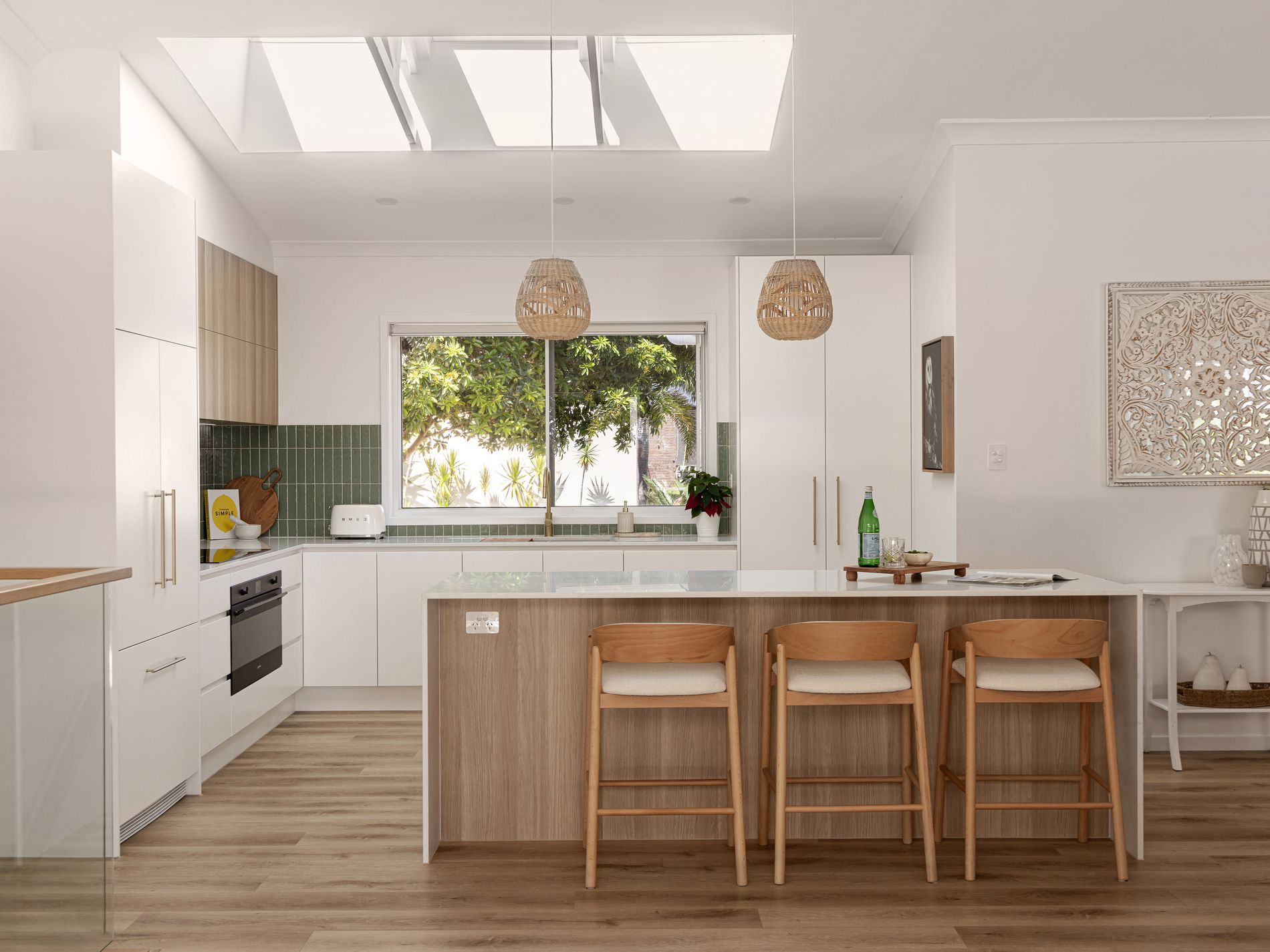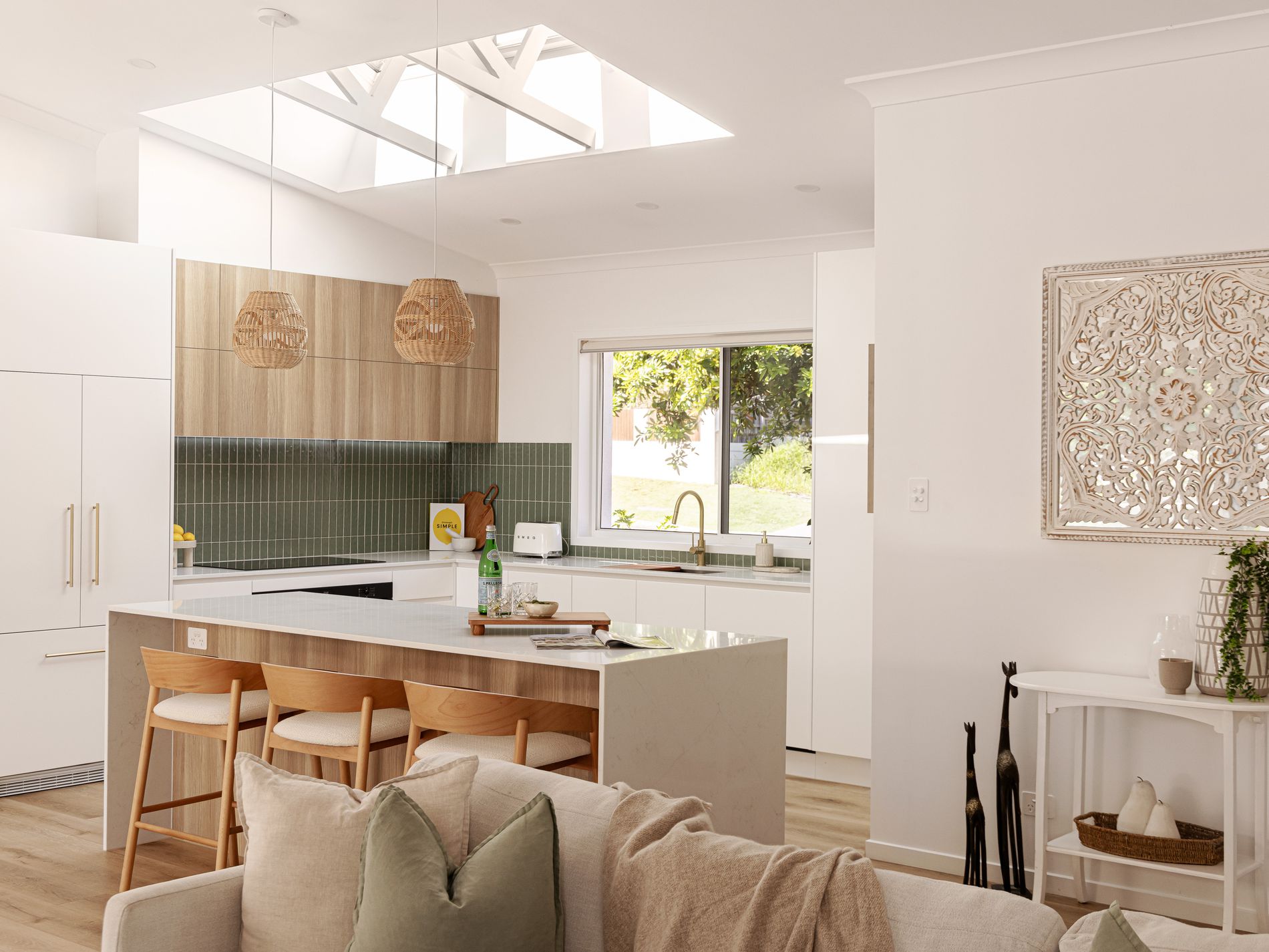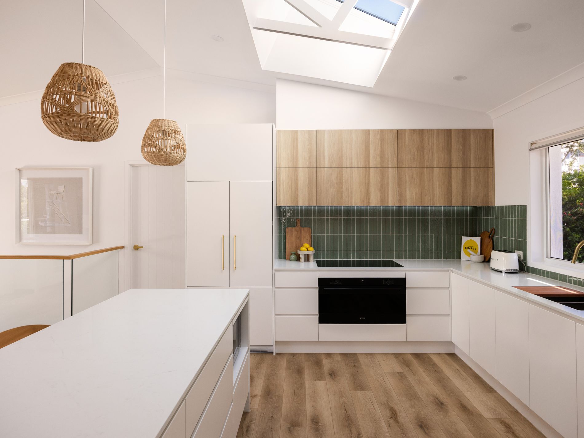 appliances, integrated Fisher & Paykel refrigeration, automated Velux skylights, polished brass fixtures, and bespoke detailing throughout. Every element has been considered, every