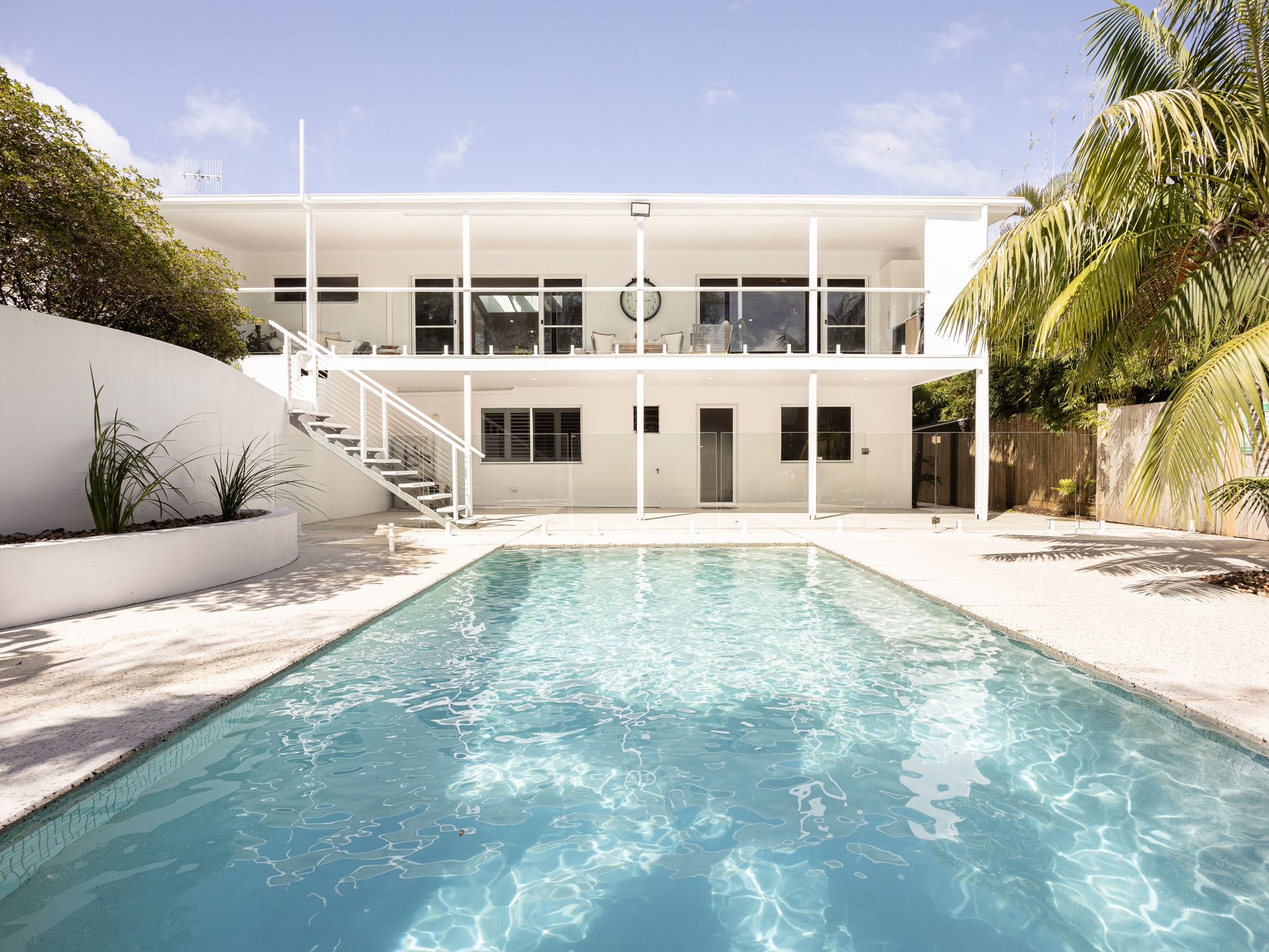Accommodation is equally sophisticated. Three of the four bedrooms feature private ensuites, offering a level of comfort and independence ideal for family and guests alike. The north-facing master suite is a true sanctuary, overlooking the polished concrete pool, bathed in natural light, and thoughtfully separated to ensure absolute privacy. Outdoors, the residence transforms into a private resort. The north-facing alfresco and pool zone is framed by lush, established tropical gardens, creating a secluded setting designed for elegant entertaining or relaxed, sun-drenched afternoons. It's a space that feels both elevated and entirely at ease.